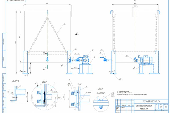 На данном чертеже представлена схема оснащения жидкостного бака насосом для обеспечения круговой циркуляции закалочной жидкости.