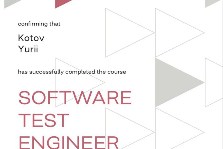 Сертификат, подтверждающий прохождение курса "Инженер по тестированию программного обеспечения".