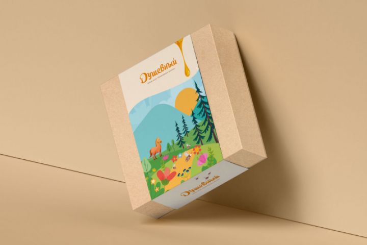 Н основе разработанного фирменного стиля, была создана авторская упаковка - для каждого сорта меда создан отдельный сюжет.