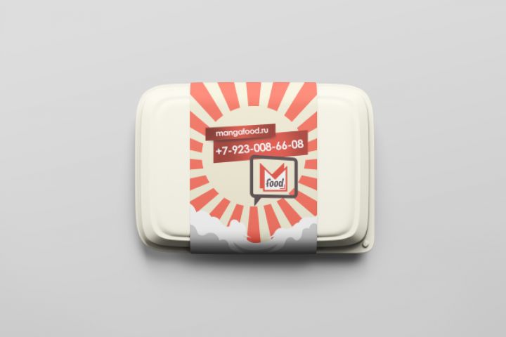 Дизайн фирменных наклеек на ланч-боксы разработаны таким образом, чтобы заказчик смог заказать большой тираж и он был актуален вне зависимости от смены меню, цен и тд