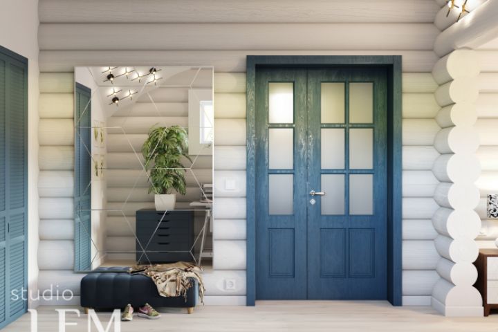 Комбинированный загородный одноэтажный дом (клинкер, бревно).