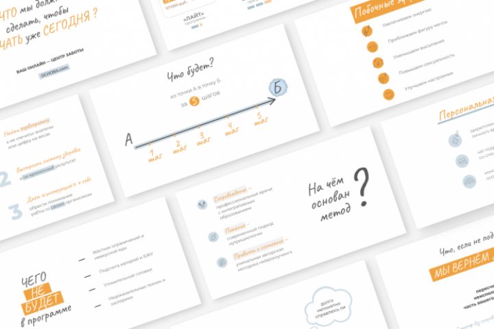 Оформление презентации в PowerPoint для онлайн-платформы ОСНОВА. Отрисовка отдельных элементов дизайна и иконок была выполнена в Figma.