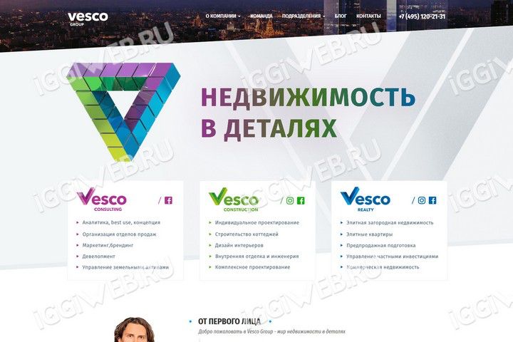 Корпоративный сайт компании VescoReality. Адаптивный дизайн. Блог.
