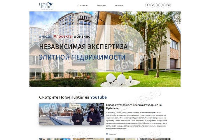 Блог о элитной недвижимости, нестандартный вывод листинга статей, уникальный дизайн.