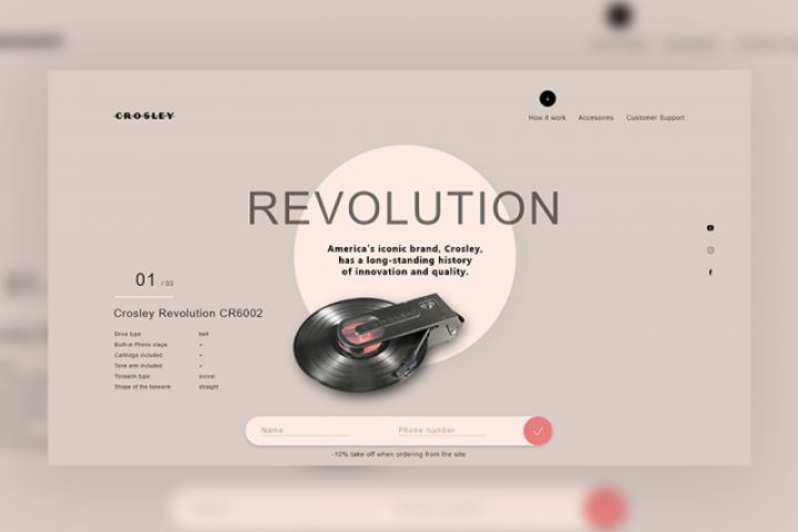 Данный дизайн для брэнда Crosley выполнен под модель портативного проигрывателя пластинок CR6002 в трендовом направлении 2018 года, за основу взят эллипс, как интерпретация самого винила. Акцент да плоском дизайне и сдержанной анимации.