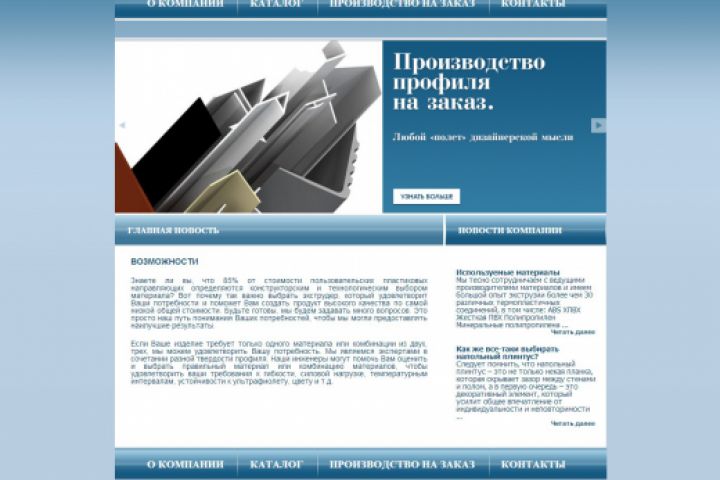 слайдер, всплывающие окна, каталог товаров, контакт-формы