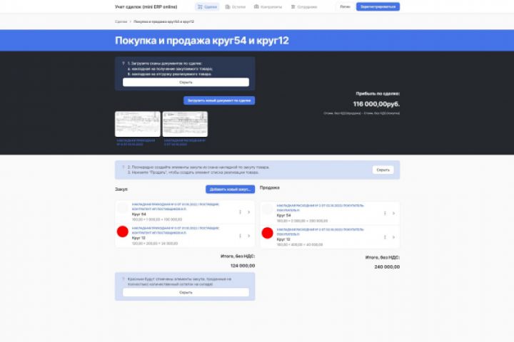 Работающий демонстрационный сервис: https://uchet-sdelok.glide.page