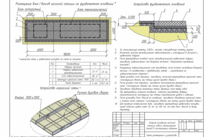 Схема устройства основания насосного блока. Autodesk AutoCAD.