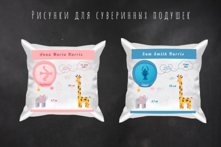 Иллюстрация для сувенирной подушки. Всего 24 макета, (12 знаков зодиака по два варианта для девочек и мальчиков). Сроки "от идеи до макета" 10 дней.