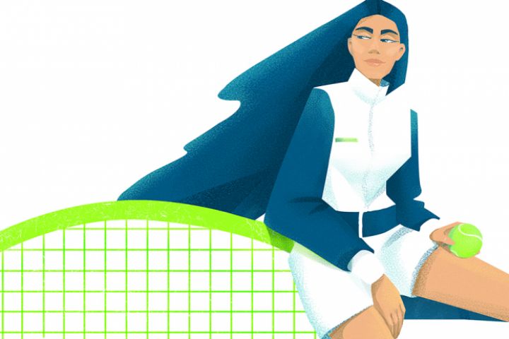 Иллюстрация девушки с теннисной ракеткой и мячом