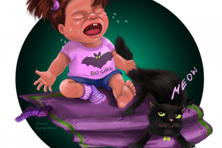 ребенок и котенок - иллюстрация