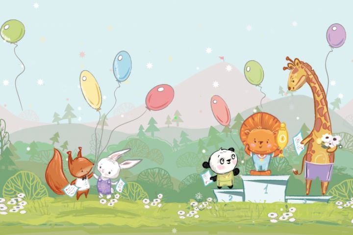 Иллюстрации с животными, милым: львенком жирафом, пандой, зайкой, белочкой