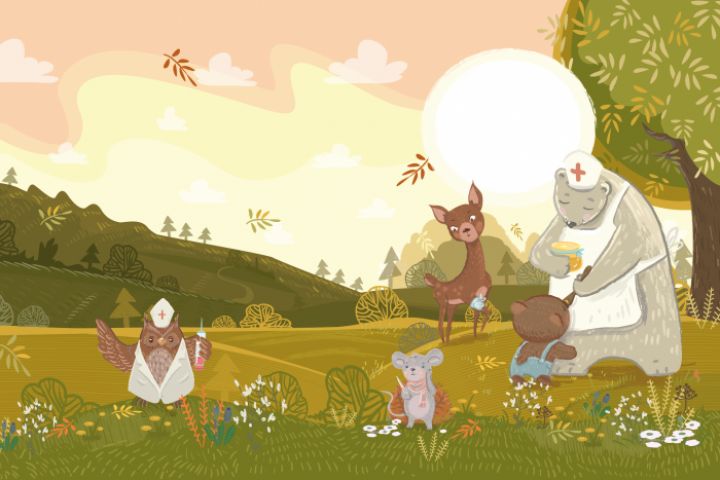 Иллюстрации с животными, милыми: мишками, мышкой, совой, косулей