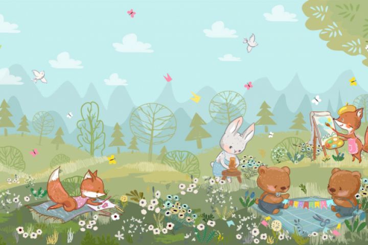 Иллюстрации с животными, милыми зайками, мишками, лисами