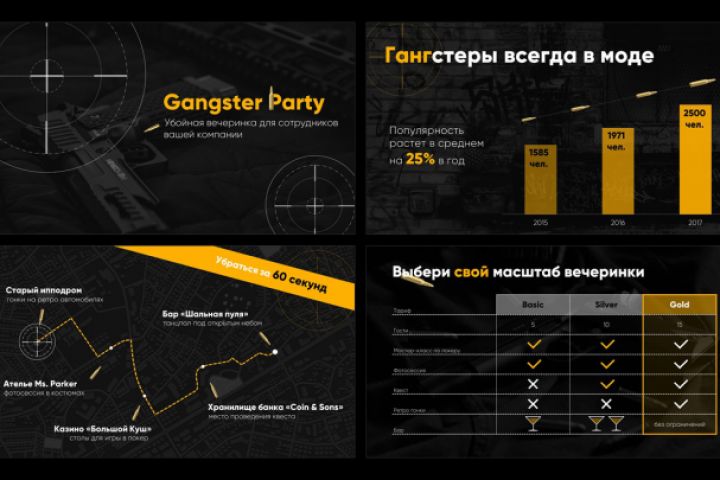 Разработан стиль презентации: подобран шрифт, цвет и концепция, на основе ассоциаций к объекту.
