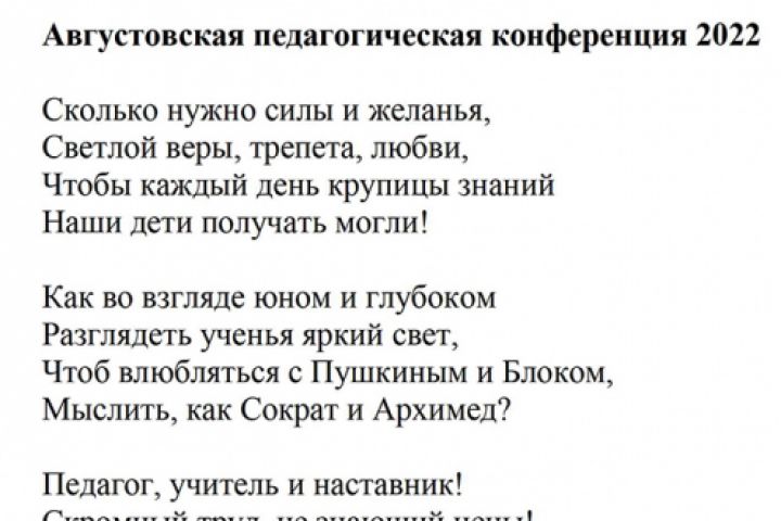 Пролог к Августовской педагогической конференции в стихах