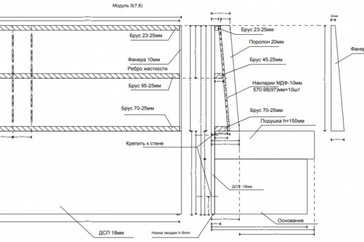 Разработка мягкого дивана для бара, чертеж. Форматирование по пропорциям и др.