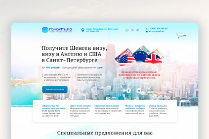 Дизайн landing page для визово-миграционного центра "Галактика" в Санкт-Петербурге