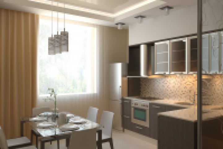 Гостиная, вид на кухню столовую
