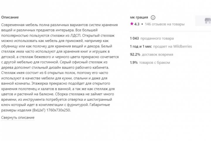 Я порекомендовала создать SEO-оптимизированное и в то же время продающее описание, чтоб пользователи маркетплейса быстро могли найти его товар через поиск.