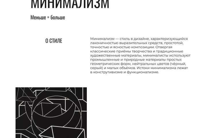 Лендинг сайта о стиле "Минимализм" с возможностью регистрации на вебинар.