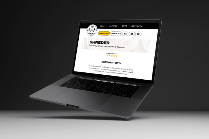 Лендинг для барбершопа Shreder, состоящий из 4-ех смысловых блоков. В дизайн включено описание, предлагаемые услуги, раздел с фотогалереей и призыв к посещению. Лендинг выполнен в минималистичном дизайне, соответствующим официальным цветам барбершопа.