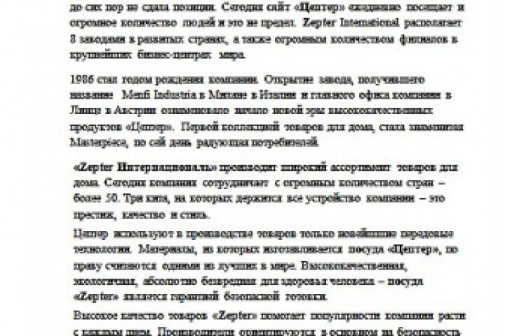 SEO-текст, описывающий ассортимент товаров фирмы Zepter.