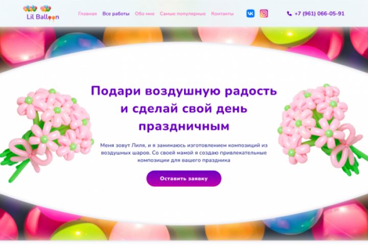 Лендинг был создан для предпринимателя, занимающегося продажей композиций из шаров. С помощью сайта мы: