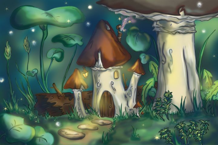 концепт-арт лесной домик в казуальном стиле подойдет для любого игрового проекта=)