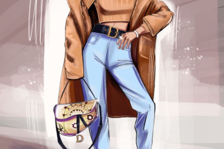 Иллюстрация - Девушка в полный рост (скетч, мультяшный стиль), выполнена в Procreate