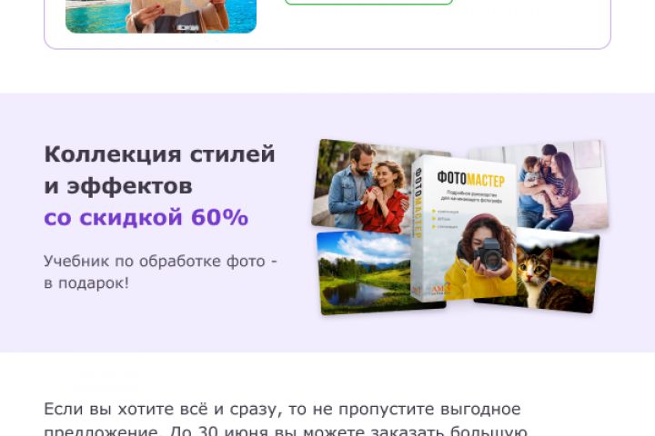 Моей задачей было создать аккуратный дизайн для e-mail рассылки для программы ФотоМастер. ЦА - мужчины и женщины 30-45 лет