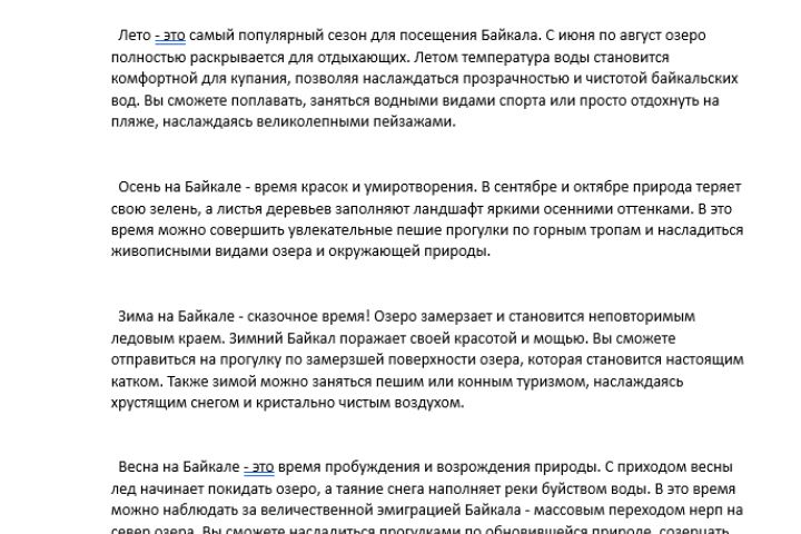 Статья на тему: "В какое время года лучше всего поехать на Байкал?"