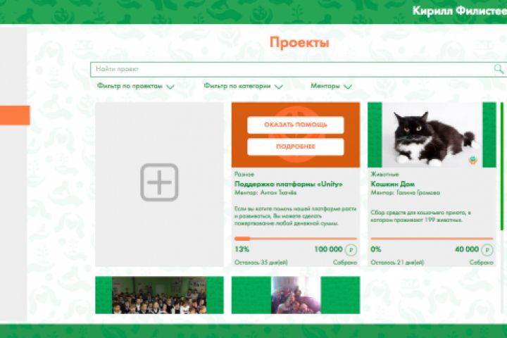 Успешно запущенный благотворительный проект. Уникальная платформа, которой заинтересовались известные меценаты, за счет прозрачности всех действий и привлекательности функционала. Новая возможность для тех кому нужна помощь, получить ее.