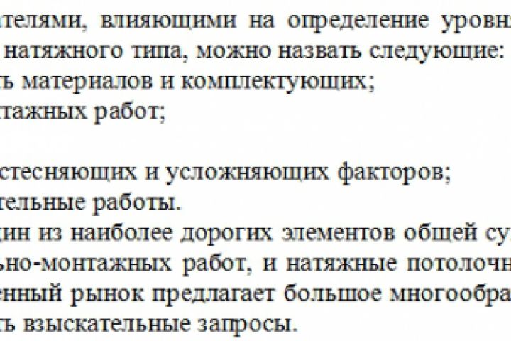 Статья с включением SEO-запросов о формировании стоимости устройства натяжных потолков