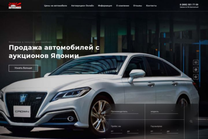 сайт по продаже автомобилей с аукционов из Японии. Адаптивен для всех устройств При разработке сайта был использован: -HTML -CSS -JavaScript и слайдеры на базе swiper