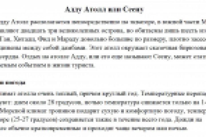 Текст - описание природы и быта на Адду Атолла. 2 раза вставлен ключ. ТЗ - изложить больше фактов, меньше лирики. Приведен отрывок.