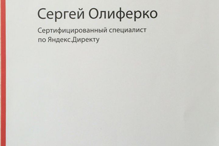 Сертифицированный специалист Яндекс Директ с 2016 года