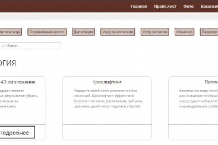 Создал страницу с каталогом, заполнил, написал скрипт фильтра по категориям и скрипт поиска услуг