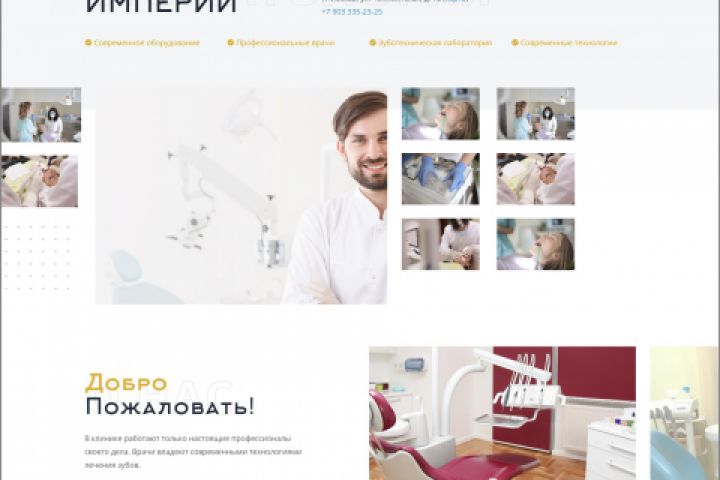Сайт стоматологической клиники «Рассвет Империи» создан на Битриксе («1С-Битрикс: Управление сайтом»).