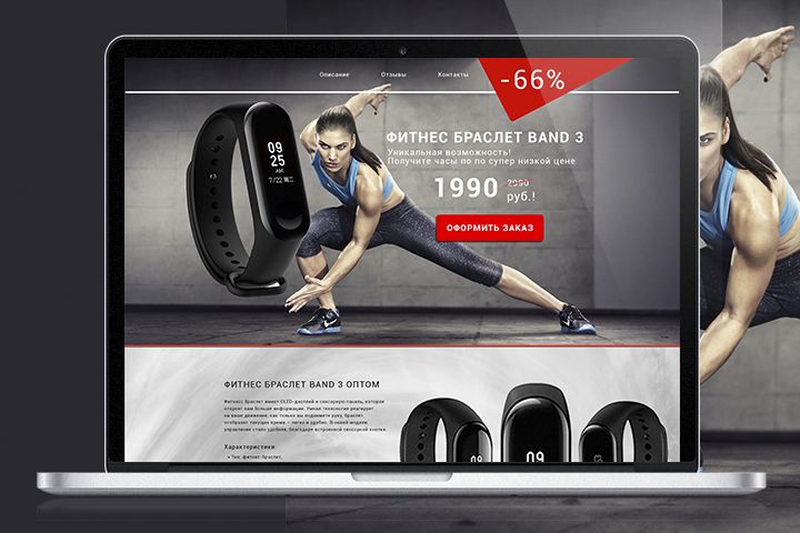 Создать дизайн, картинки браслета, видео, отзывы, кнопка форма обратной связи, для того что бы потом можно было сверстать ее.