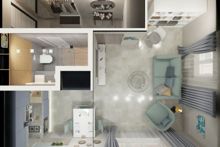 Визуализировался дизайн-проект измененной однокомнатной квартиры площадью 35 квадратных метров. Были снесены и заново созданы перегородки для функционального использования ванной комнаты и кухни. Так же была выделена обеденная зона, гостиная, рабочая зона. Визуализация была сделана в течение 2 недель (проект создавался с рисунка (технического задания) заказчика-дизайнера). Стоимость данной работы составила 28 тысяч рублей.