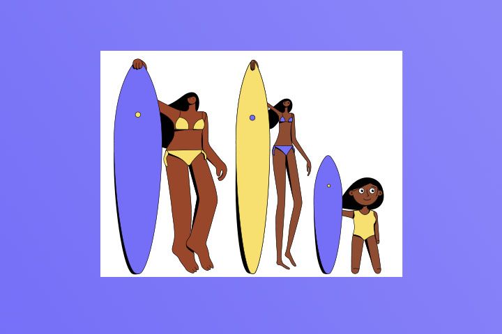 Задача: нарисовать серфингистку в трех разных стилях.