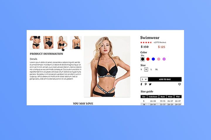 Страница продукта была сделана для интернет магазина нижнего белья.