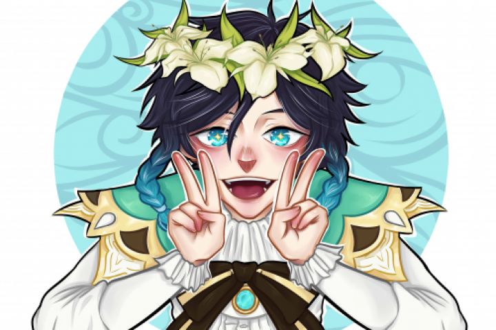 Венти из игры Genshin Impact, нарисованный специально для создания брелока.