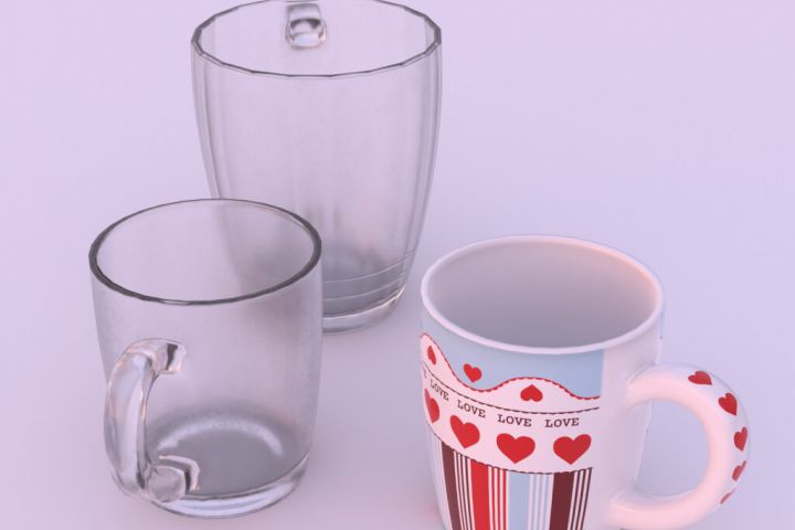 3д-модели чашек. Текстура была нарисована в Substance Painter, рендер в Blender.