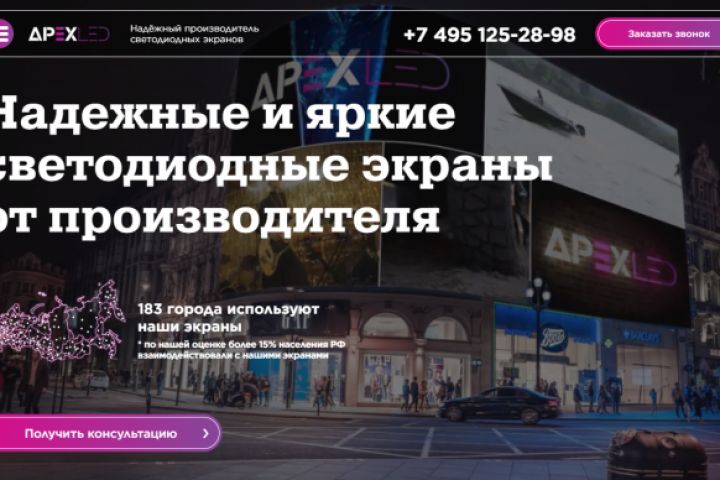 Адаптивная вёрстка и посадка на WordPress лендинга производителя светодиодных экранов Apex LED.