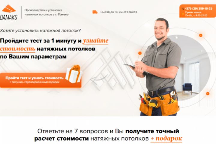 Вёрстка сайта производства и установки натяжных потолков в г.Гомель.