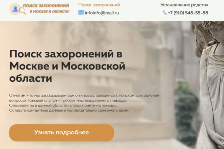 Вёрстка сайта по поиску захоронений в Москве и МО