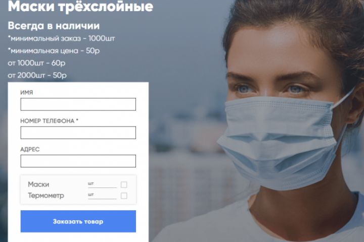Адаптивная вёрстка лендинга по продаже медицинских масок.