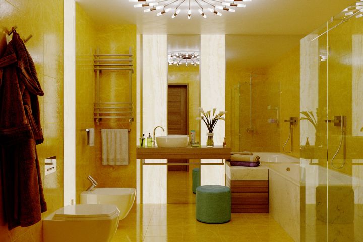 3D-визуализация интерьера – это создание детализированной модели будущей интерьерной обстановки. Это возможность представить, как будет выглядеть каждая комната в будущем доме с учетом мельчайших деталей: материалов и расположения мебели, установленных светильников, цвета и текстуры стен, пола, потолка и т.д. Визуализация покажет заказчику, что он получит в результате реализации проекта. На данном примере изображена ванная комната.